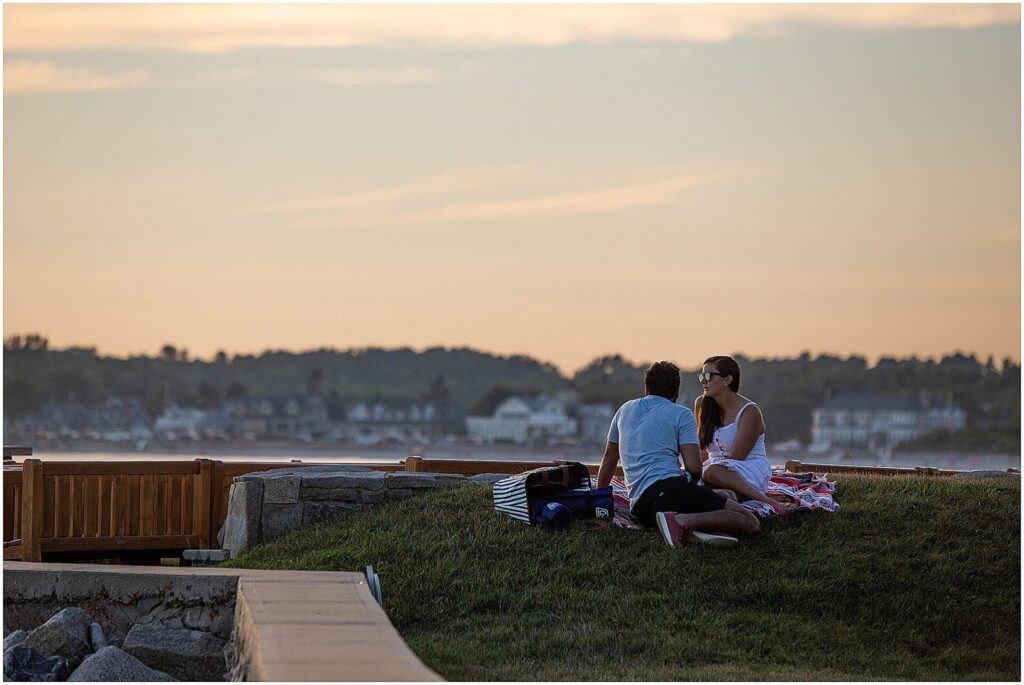 He set out to have a little picnic on the edge of St. Anne’s lawn overlooking the water on top of a little hill (at my suggestion) and what they ended up with was the most intense sunset. The trickiest aspect of all of this was that Rahul never got on one knee so I had NO cues but I did get the moment he asked as I walked by. What followed was a beautiful engagement session on the water at sunset in Kennebunkport, Maine in the summer. Perfection.