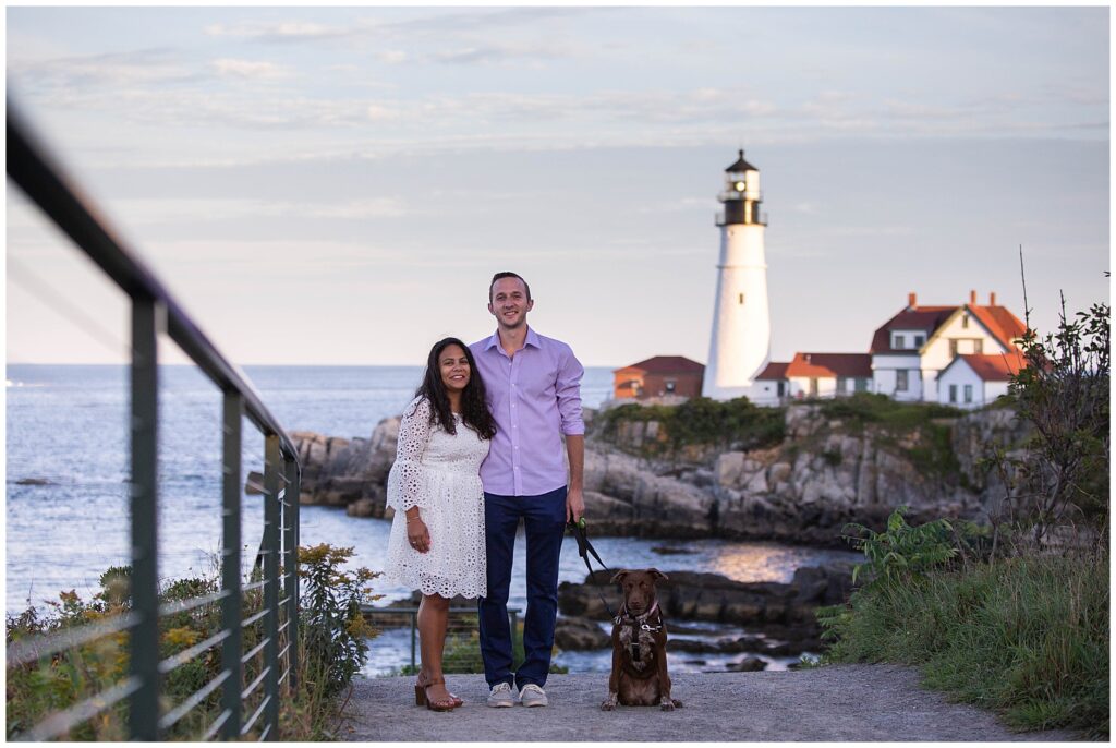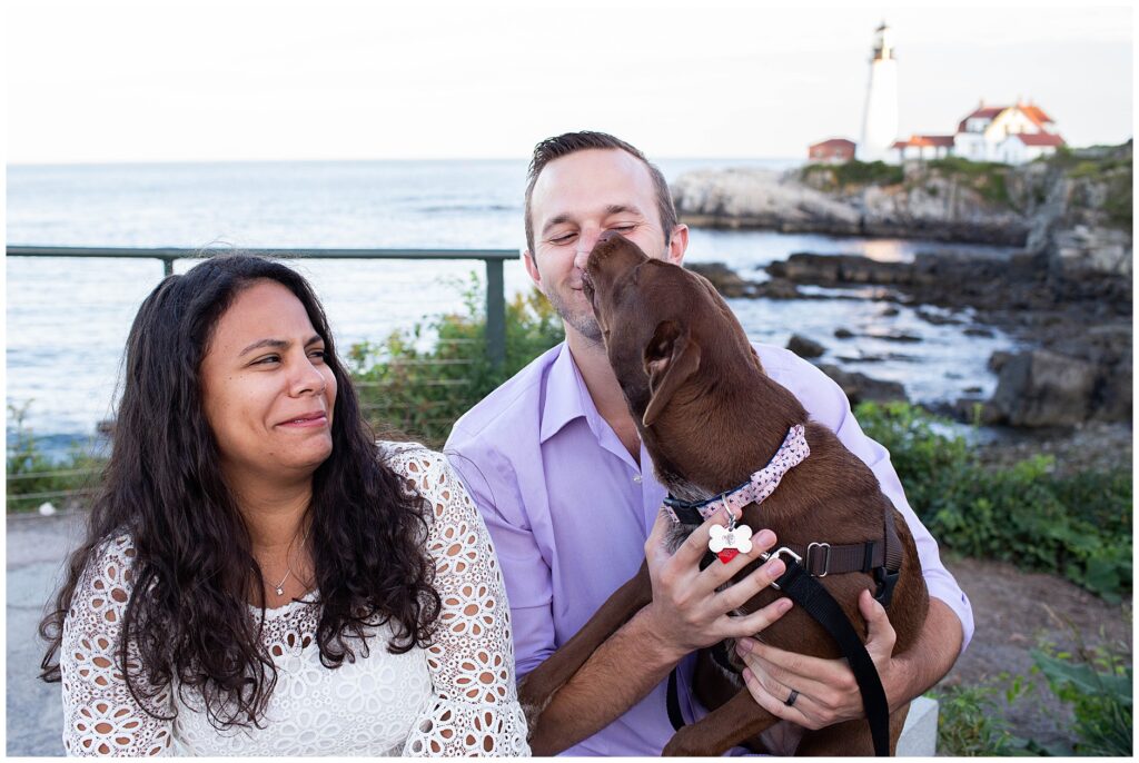 These two. This sweet couple needed a little getaway and decided while they were here to schedule a couple’s photoshoot – and what better location than at Fort William by the Portland Headlight?! They brought along their sweet little pupper, Bella, who was SUCH A GREAT DOGGIE MODEL. <3 I photograph families who come to Maine who want to have some solid memory of their time here, and couples are no different. You shouldn’t NEED to have some monumental milestone happening but in these guys’ case, they were newly married and they wanted some photographs of themselves during their getaway.