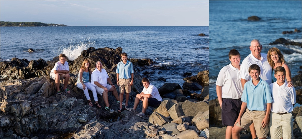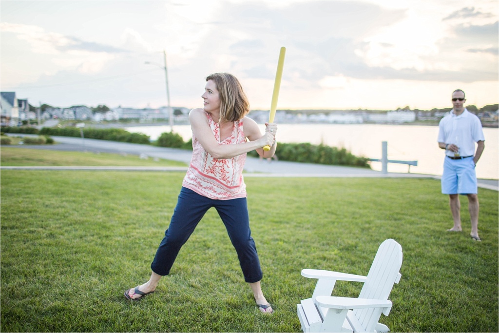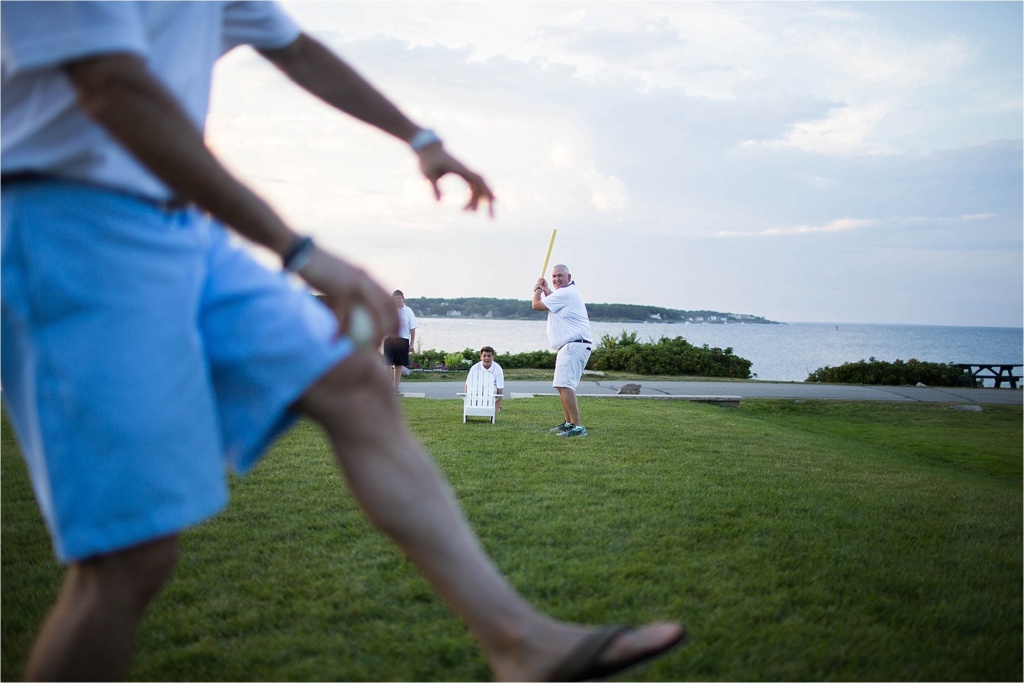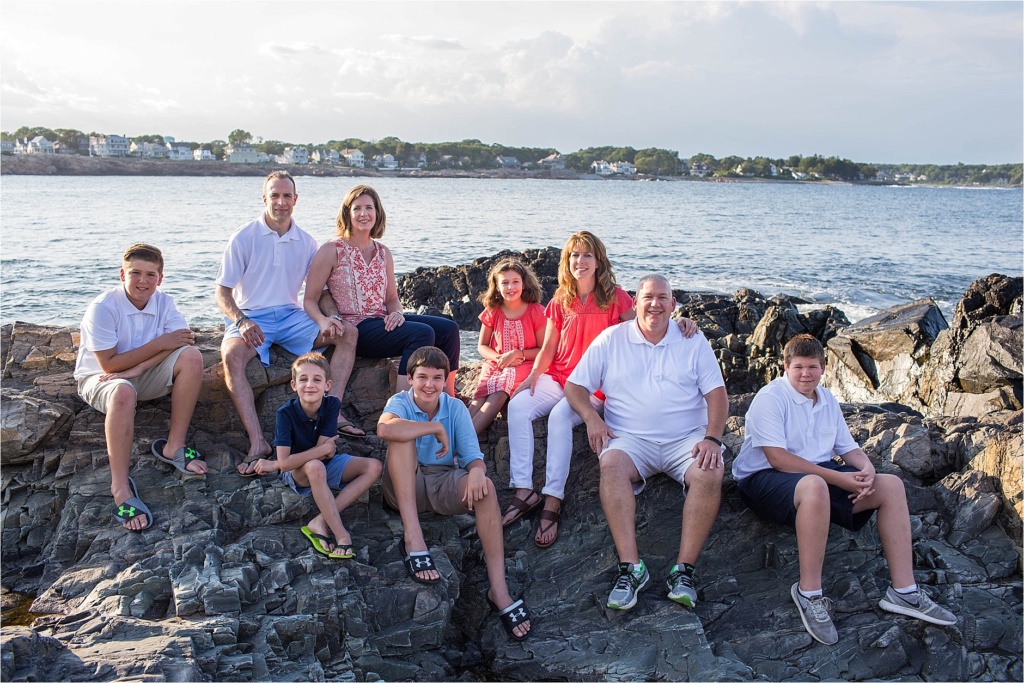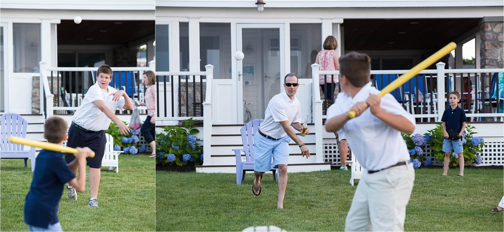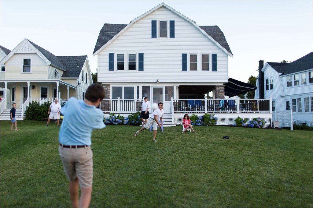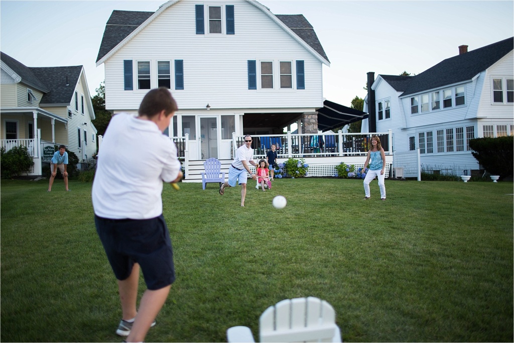 I met up with the “C” Family at their rental home in York Maine for a family portrait session along York’s rockier coastline overlooking the Short Sands Beach area. Sisters Kim and Kurri brought their families to Maine for a week-long vacation together in York to soak up some sun and catch up. What I especially loved about this session is everyone’s sense of adventure to get the images that they wanted and braved the rocky coastline to achieve their goal. At the end of their session they asked if I would stay and grab some candids of them all playing baseball together and literally everyone got in on the game together. It was great! I’m just thankful that they were playing with a whiffle ball and not a real one or I would have been a hurting unit! haha getting close enough to them to photograph in different angles proved risky! It was well worth it, and as the sun set, ominous clouds moved in and made for a dramatic ending to the day (as far as calm sunsets go).