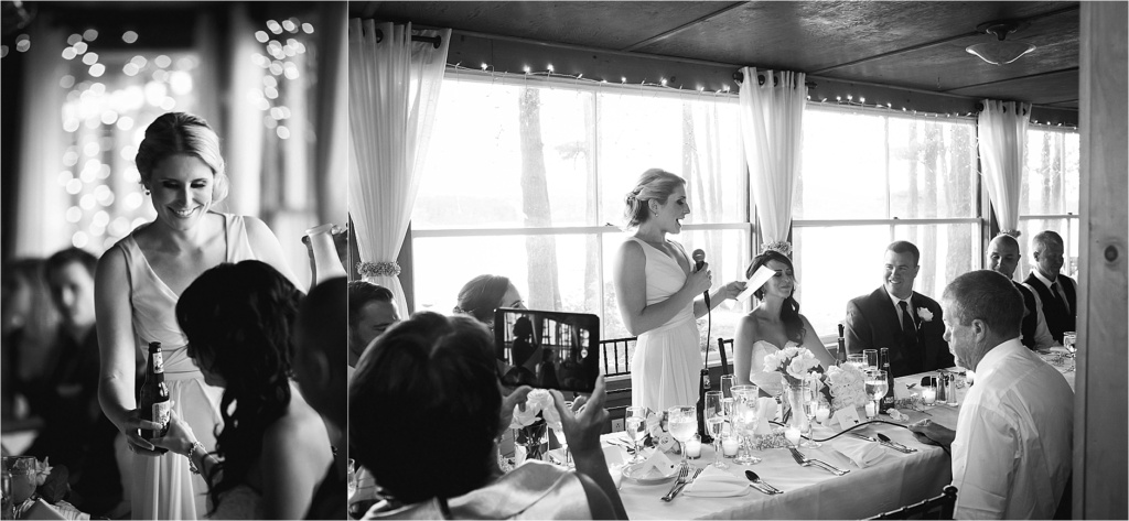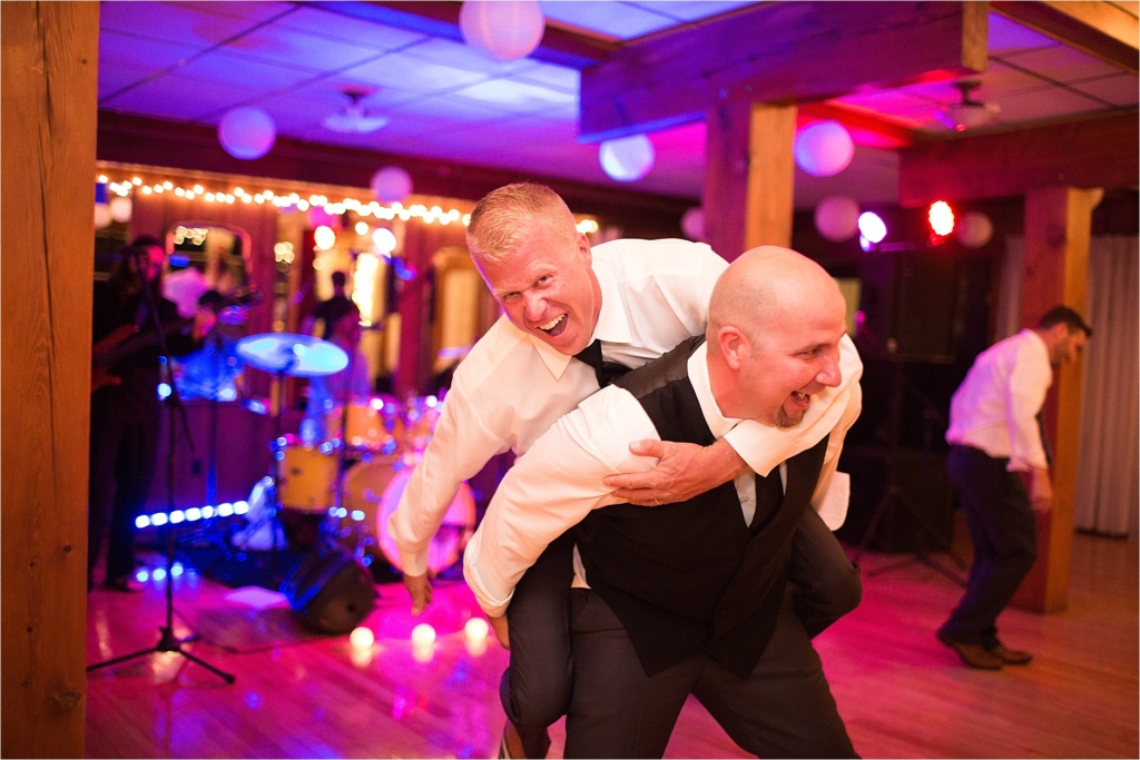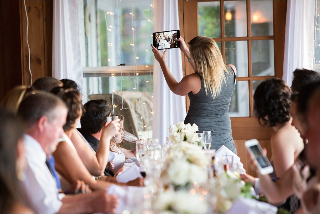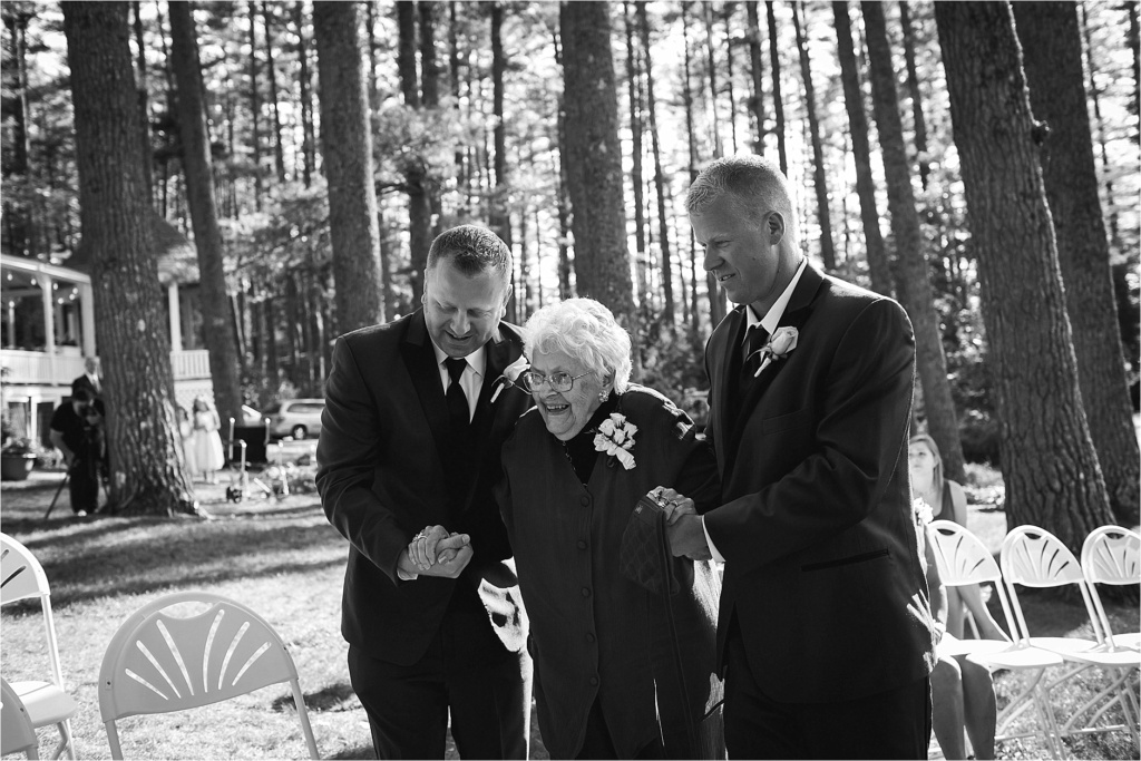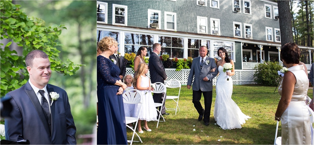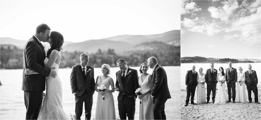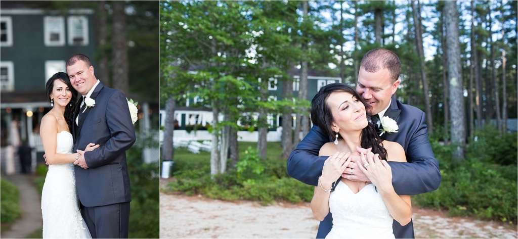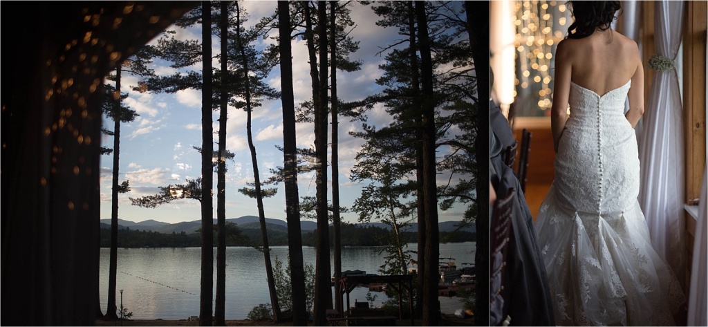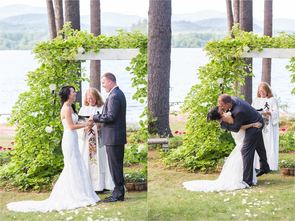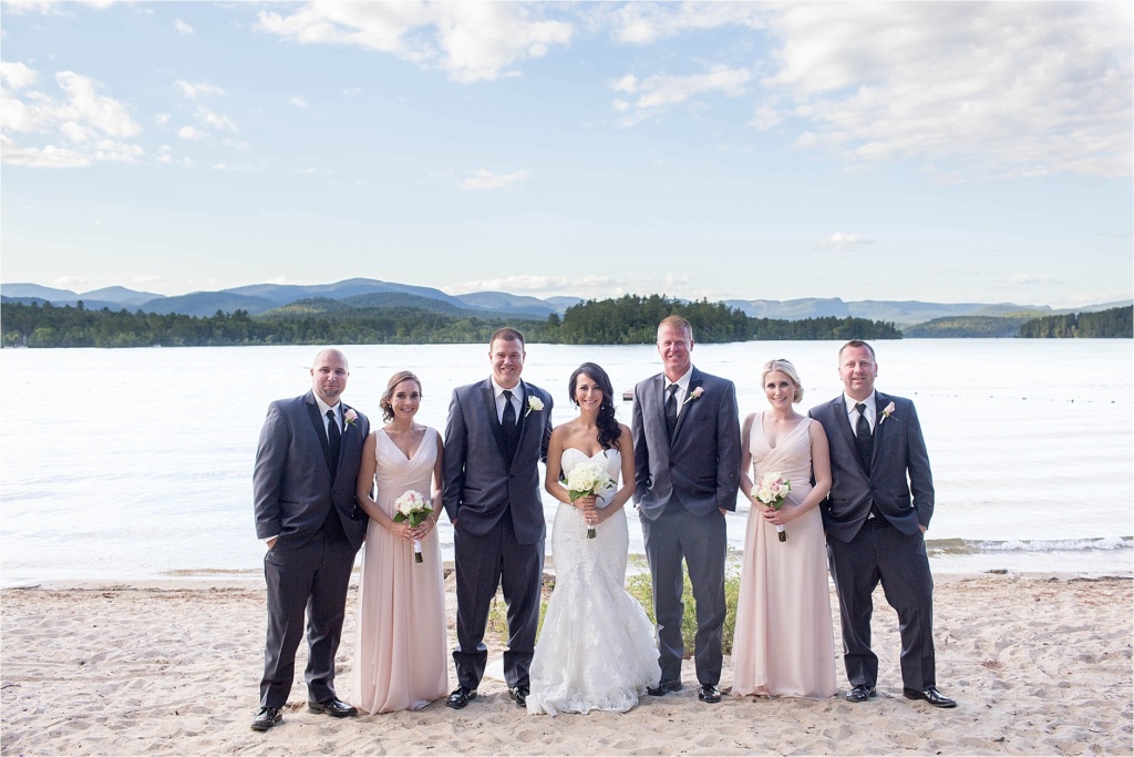There is something quaint and carefree about a Maine lakeside wedding. Many times you have mountains as your backdrop, sandy beaches, tall pine trees, and calm waters. And, if the day is way too hot where you just can’t even, you can always top it off with a jump in the lake at the end of the party. Bernadette and Justin selected the beautiful Pleasant Point Inn for their vow exchange which offered the prettiest view of mountains. Despite a tragic accident earlier in the morning where Bernadette’s brother was hit by a car while heading out for a run, the family decided to continue with the wedding as planned. It was agreed that they would all return to the Inn the next year to celebrate with every single family member as originally planned.