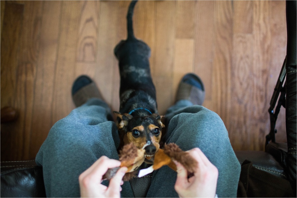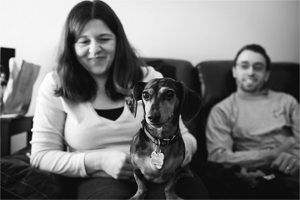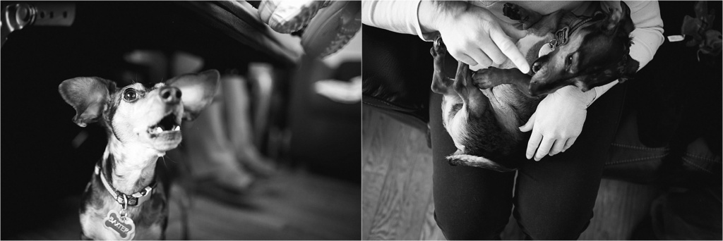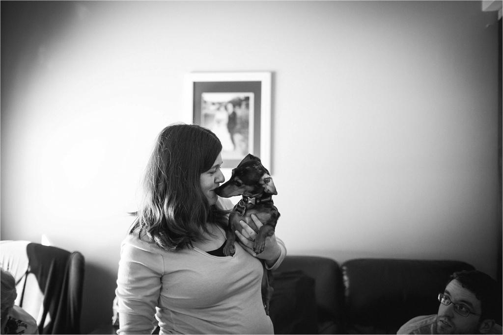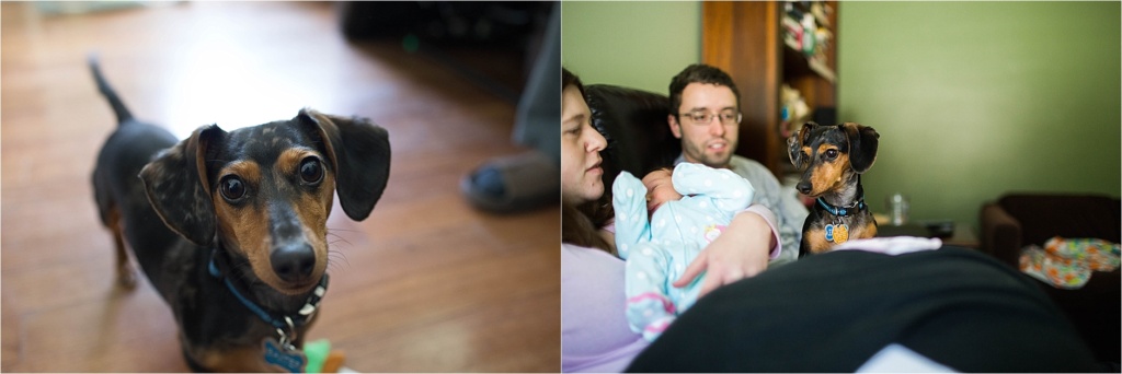 Katelyn’s parents came by later in the morning to sneak in some of their own snuggle time with Liliana and to play with their “grandbaby” Daschund, Baxter. Baxter was already in full Big-Brother-Mode and taking his job seriously. (He was a lot of fun to photograph, too!)