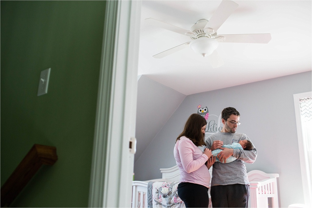 Katelyn and Jacob wanted to capture a little piece of this short period in their life. I explained that to capture it best they should be exactly as they are every day. Nothing fancied up. The best part? They did exactly that. I showed up and Liliana was doing her best baby business with snuggling, eating, and sleeping. They just hung out like they had the first few days at home. Eventually, we made our way upstairs to Liliana’s room where they enjoyed staring at their beautiful baby girl and changed yet another poopy diaper.