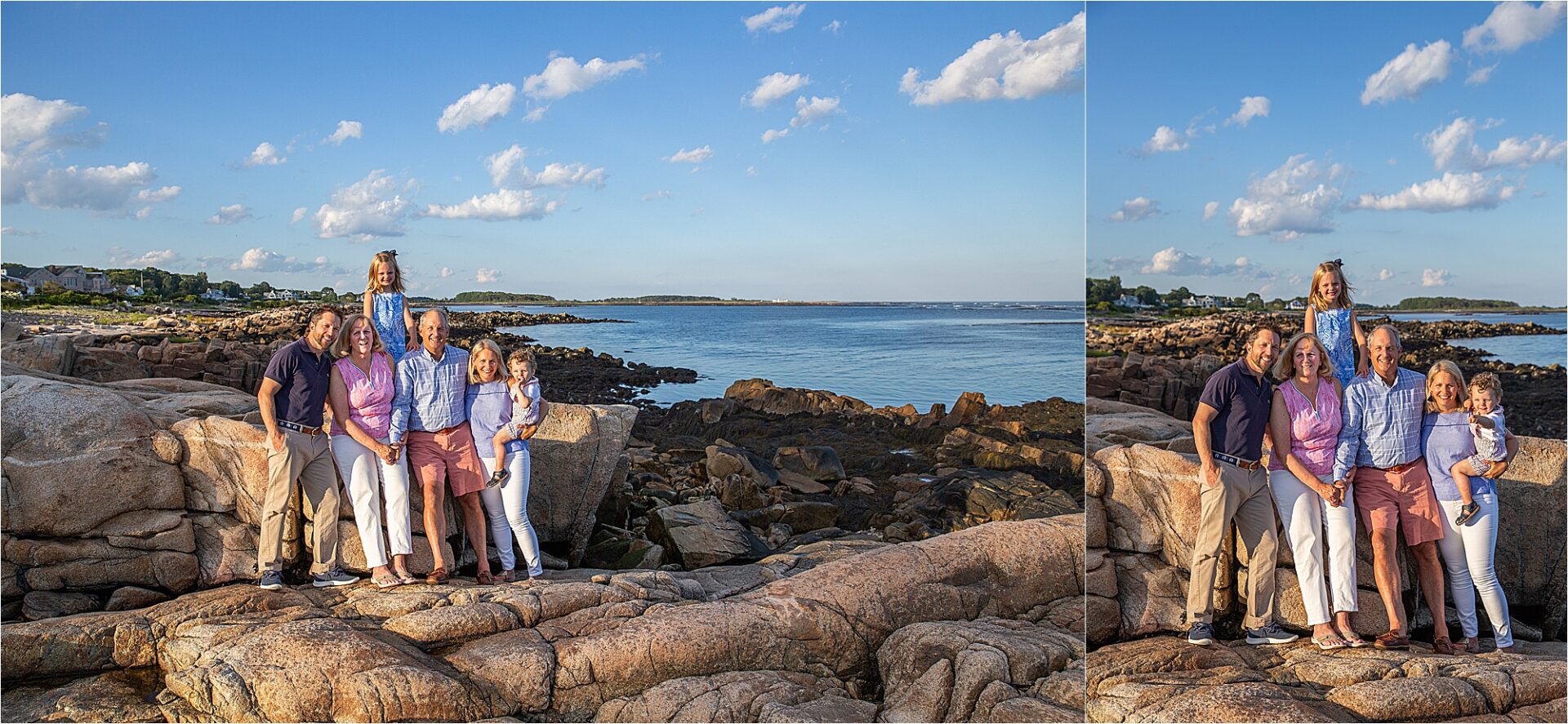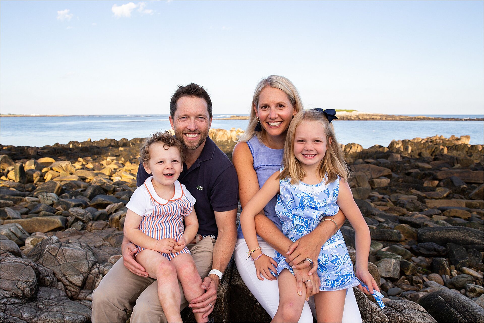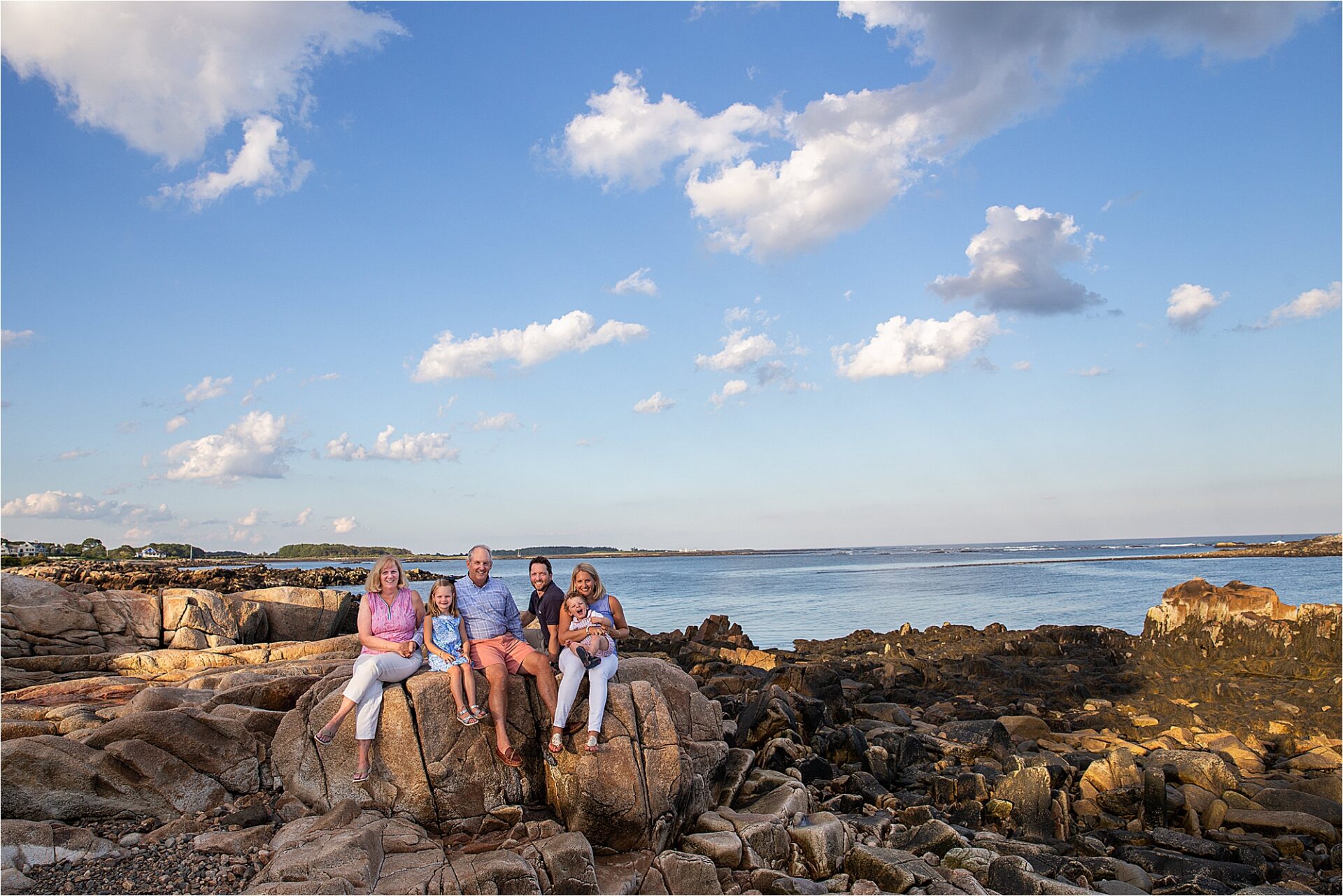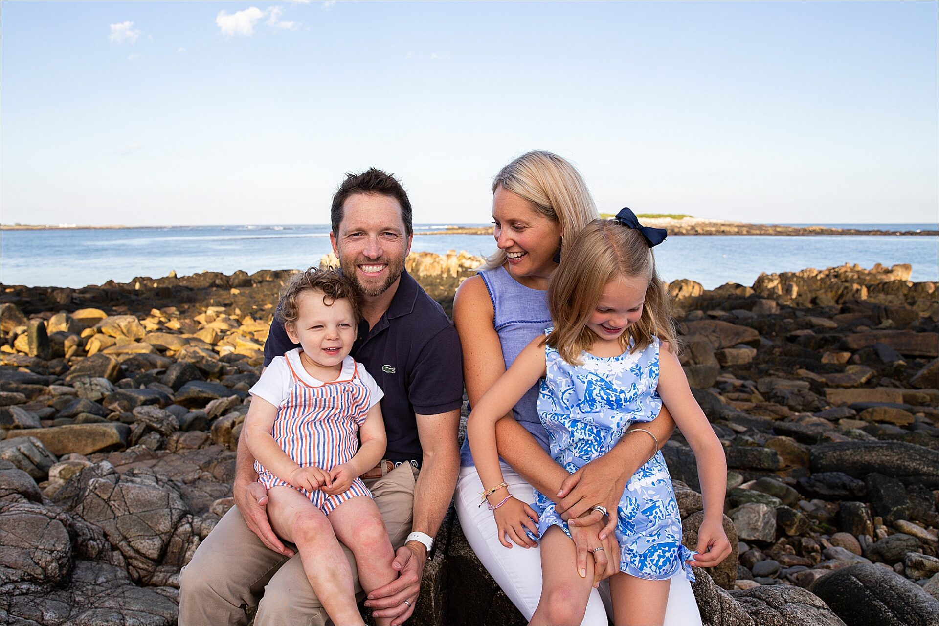 It’s inevitable that a family comes to a point of great change that you know will arrive but just pretend it will be an eternity before it arrives. In this case, the home that had been in the family for generations was being sold. This is where Kate’s father grew up with his siblings and where she would go to spend time with her grandparents. This is the place that her own children were growing and getting to know… but this chapter was coming to a close. She wanted to remember this place. She wanted to remember all of the adventures that she and her siblings had climbing on the rocks, watching seals on the island, finding treasures buried in the pebbles and coarse sand. So what better idea than to have a photo session at their Kennebunkport home.