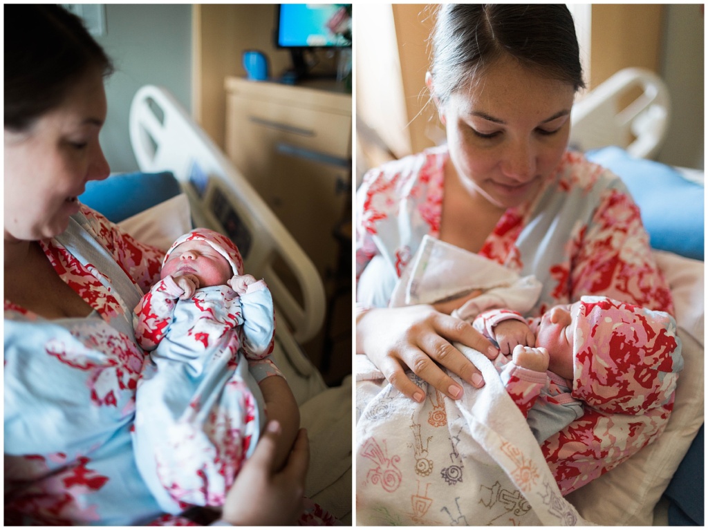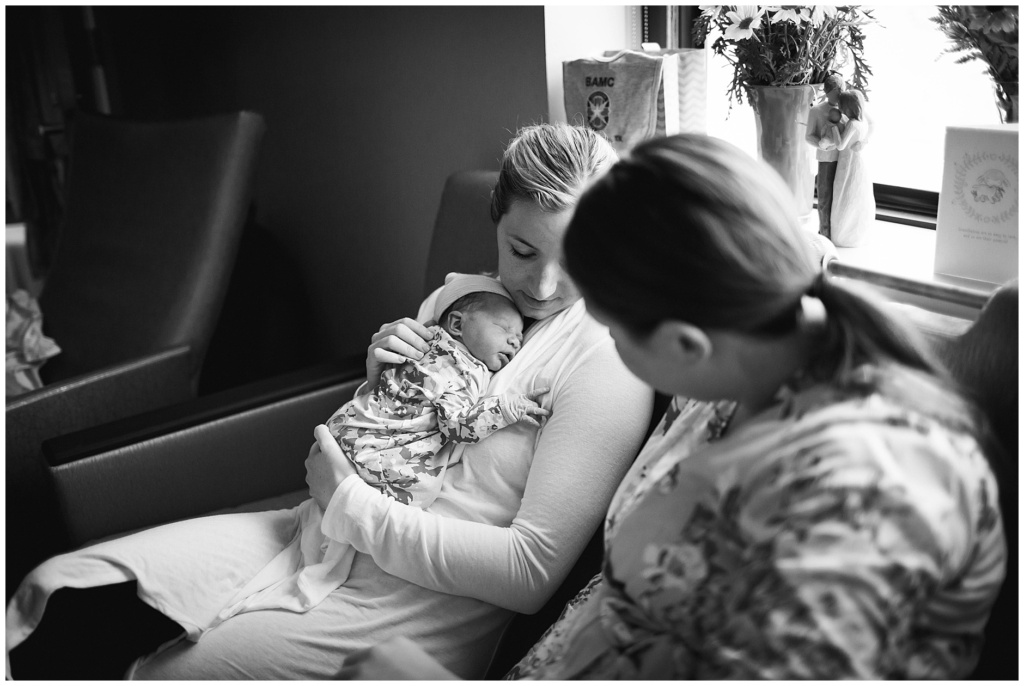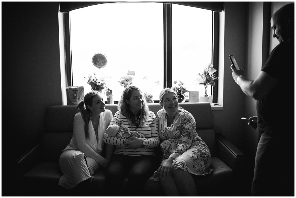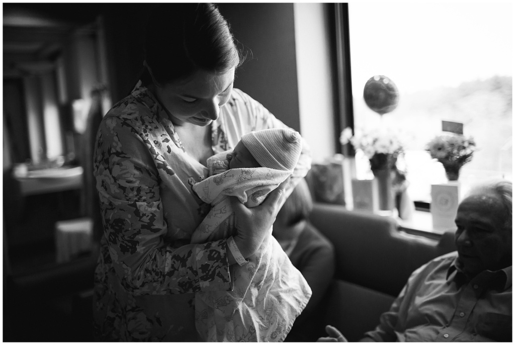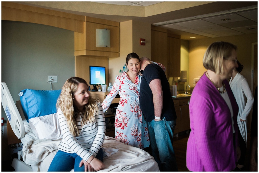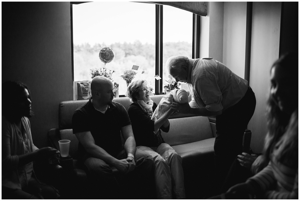 Baby E finally arrived! I scooted down to Portsmouth New Hampshire’s hospital to meet up with Jacob and Julie and meet their sweet new baby girl. When I arrived, Julie’s sisters were already there, as was her grandfather (newly appointed a great grandfather!) and her mom. Everyone took turns snuggling Baby E and she matched her momma perfectly in both looks and style.