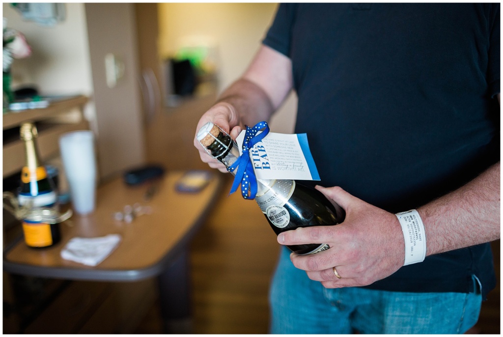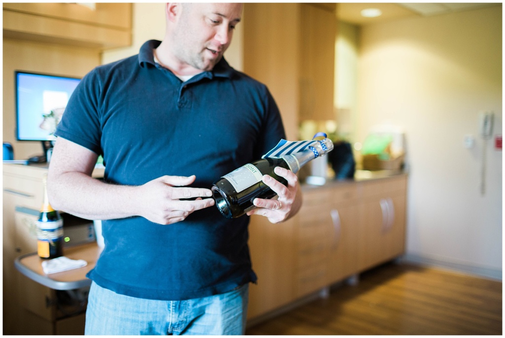 Of course, there is always a reason to celebrate with Jacob + Julie and this was no exception. A friend had gifted them some bottles of champagne before they were married and each bottle had a tag on it to determine when each was to be opened. Years later, here they were, opening yet another bottle to celebrate another major milestone in their life.
