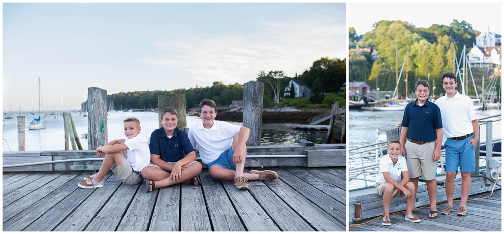 I met the B Family a few years back when I photographed Jamie’s sister’s wedding in the Belgrade Lakes region. They come back every summer to vacation on the lake and this time they contacted me and asked if I would be willing to meet them somewhere on the ocean to do something a little different than what they have back home. OF COURSE I would meet up with them! I suggested making a day trip and visit the Camden, Rockland, Rockport Maine area and then we could meet up for a portrait session in the area before they went to dinner. And that’s just what we did! They ended up selecting the Rockport Harbor as their backdrop with the fishing boats and rocky coastline. In the evenings the harbor on the south-west side is shaded and has the perfect view of the harbor.