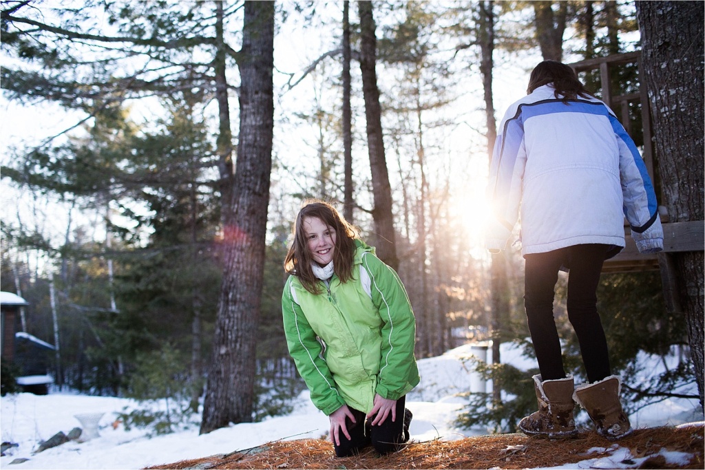 The first part of the session was out front in the wooded yard for the formal part of their session. The kids froze like a true Mainer does. Not so much as a peep and they smiled and snuggled together (and then promptly put their jackets back on).